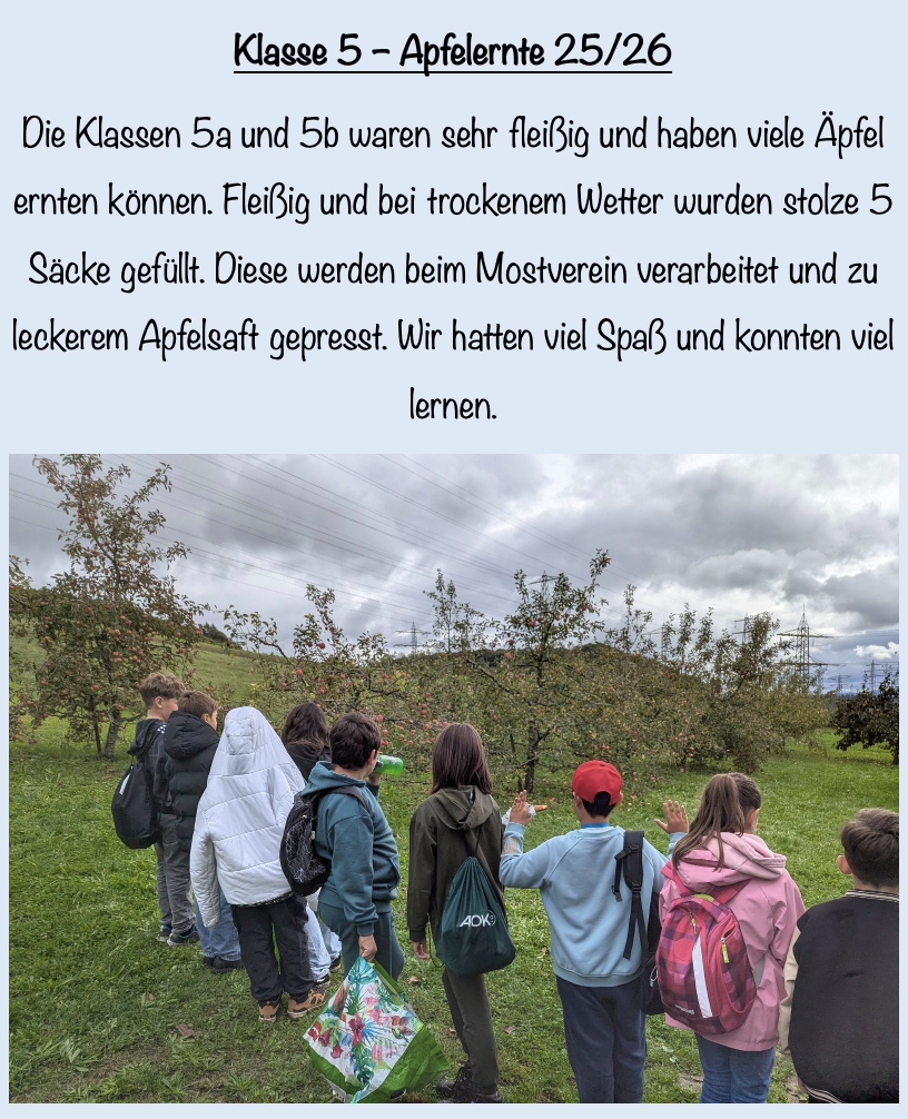 Apfelernte der Klassen 5a & 5b